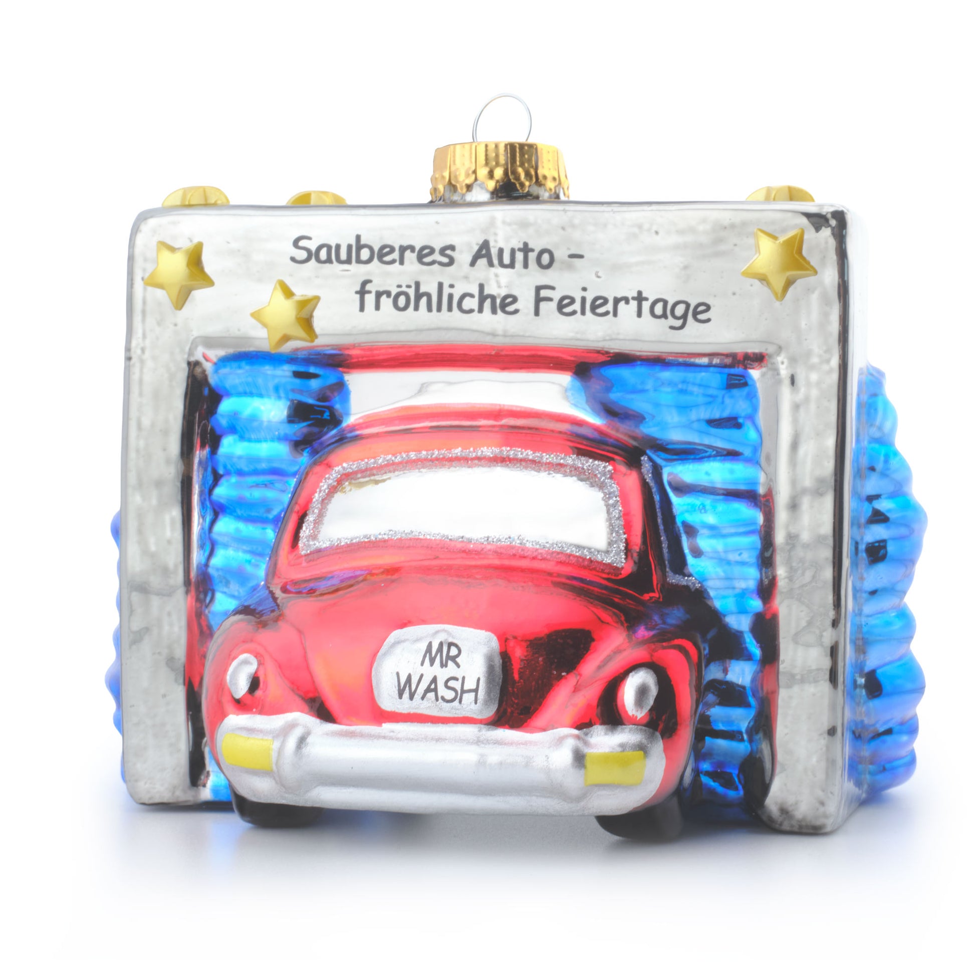 Das stilisierte Auto zwischen zwei Textilbürsten bringt den bekannten Mr. Wash Glanz mit einem Augenzwinkern direkt an Ihren Weihnachtsbaum. Jede Farbe einzeln zum gleichen Preis – legen Sie Grün, Rot oder beide Varianten in den Warenkorb. Ein charmantes Extra für Autofans und Liebhaber gepflegter Details.